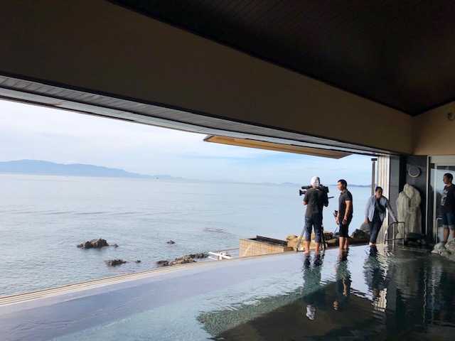 人気番組「相棒!」に出演されていた寺脇康文さんがご来館され赤穂温泉「天海の湯」の露天風呂をご利用いただいたシーンが放送されました。天気も良く絶景のお風呂をお楽しみいただきました。寺脇さんは好きなことが3つあり①温泉②海③自然の景色だそうでそのすべてが銀波荘にはありますと大変うれしいお言葉をいただきました。11月22日がロードショーの「決算!忠臣蔵」に出演されておりその縁で来穂されました。まもなく公開されますがヒット間違いなしですね。