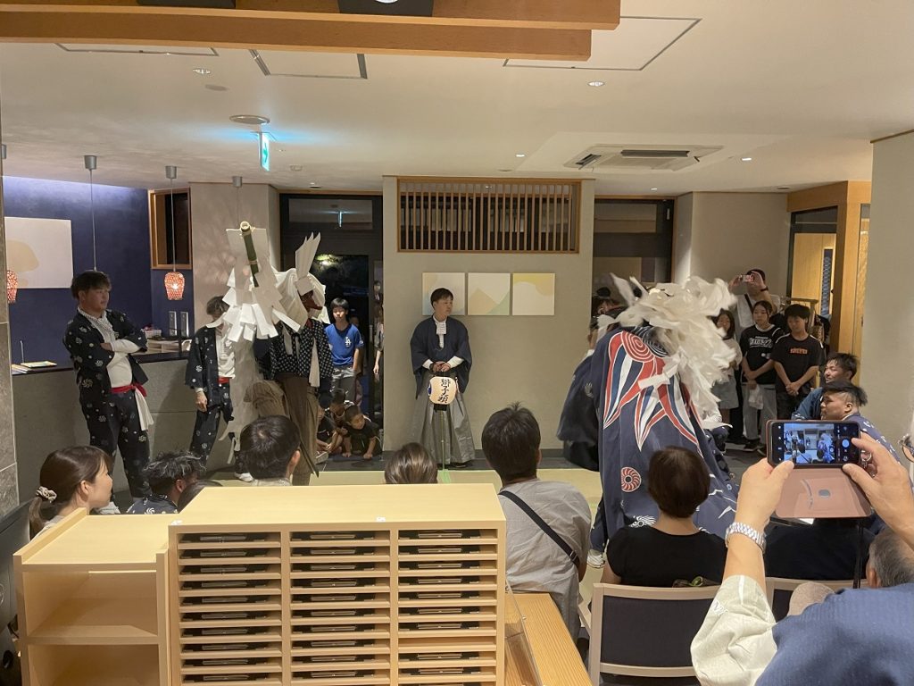 当館にも獅子舞が訪れ、太鼓に合わせた迫力ある舞が披露され、ご宿泊中のお客様からは大きな拍手と歓声が上がりました。